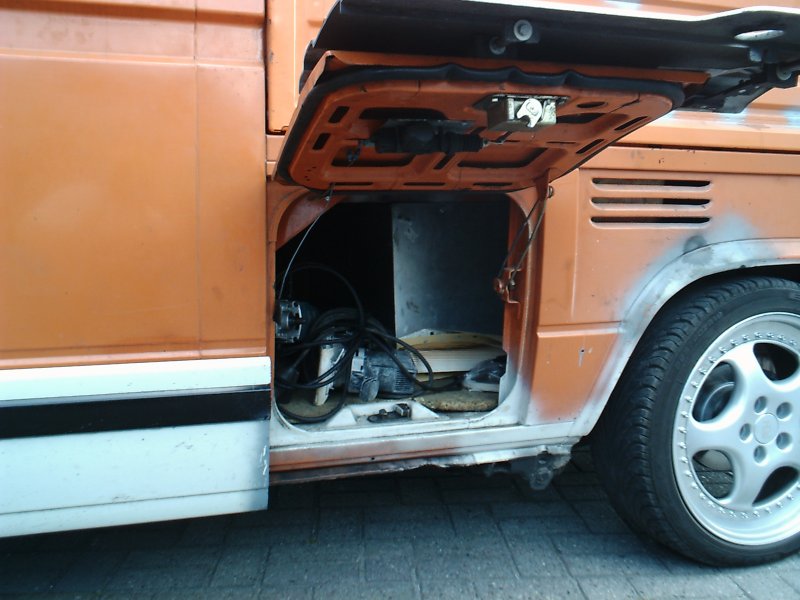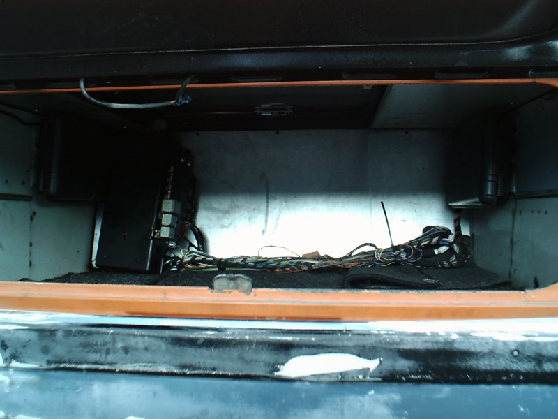 ehemaliger Motorraum mit Motorsteuergerätekasten an linker Wand, Getriebesteuergerät an rechter Wand, Verteilerkasten zum Bus an der Stirnwand. Auf die Strippen kommt noch ne Abdeckung